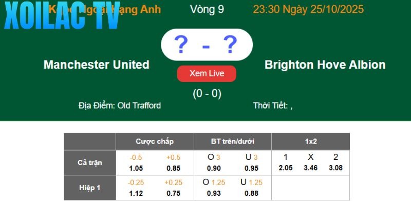 Mốc kèo Tài Xỉu 3 bàn được dự báo sẽ dễ dàng bị vượt qua. Cả Manchester United và Brighton đều theo đuổi triết lý bóng đá tấn công cởi mở, trong khi hàng thủ của cả hai lại không quá chắc chắn. Thêm vào đó, 6/7 cuộc đối đầu gần nhất giữa hai đội đều có bàn thắng từ cả hai phía. Vì vậy, kịch bản một trận đấu nhiều bàn thắng là rất dễ xảy ra và cửa Tài là lựa chọn sáng giá.